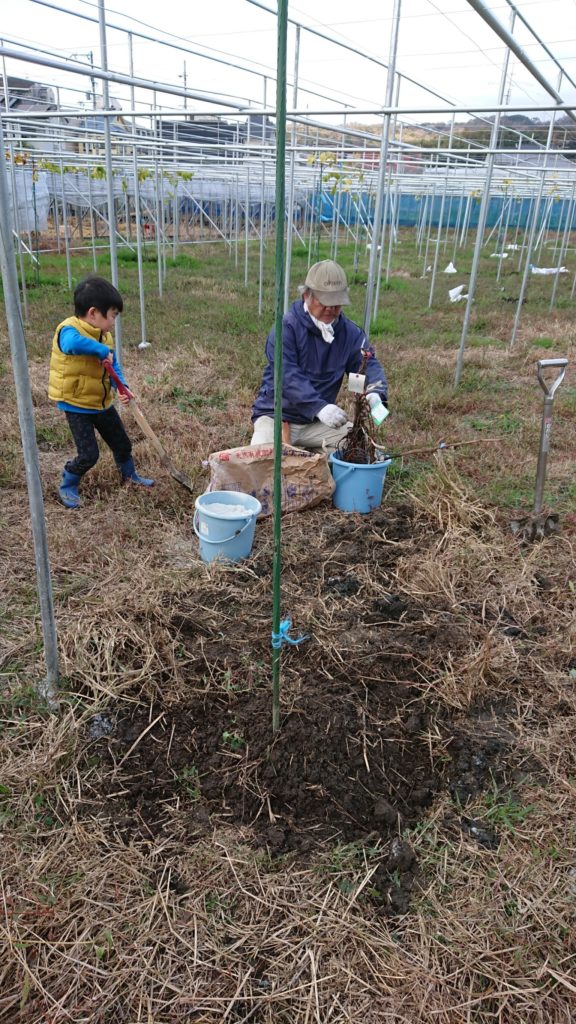 最近は、家族全員で協力して棚づくりや苗木を植えています。