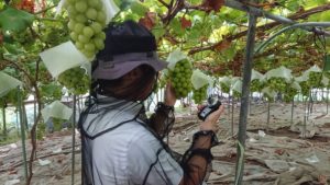 現在は、収穫時に味見をしたり、微妙な色の違いを見たり、甘いシャインマスカットの特徴になる部分を見比べて慎重に収穫しているのですが、とても時間のかかる作業です。