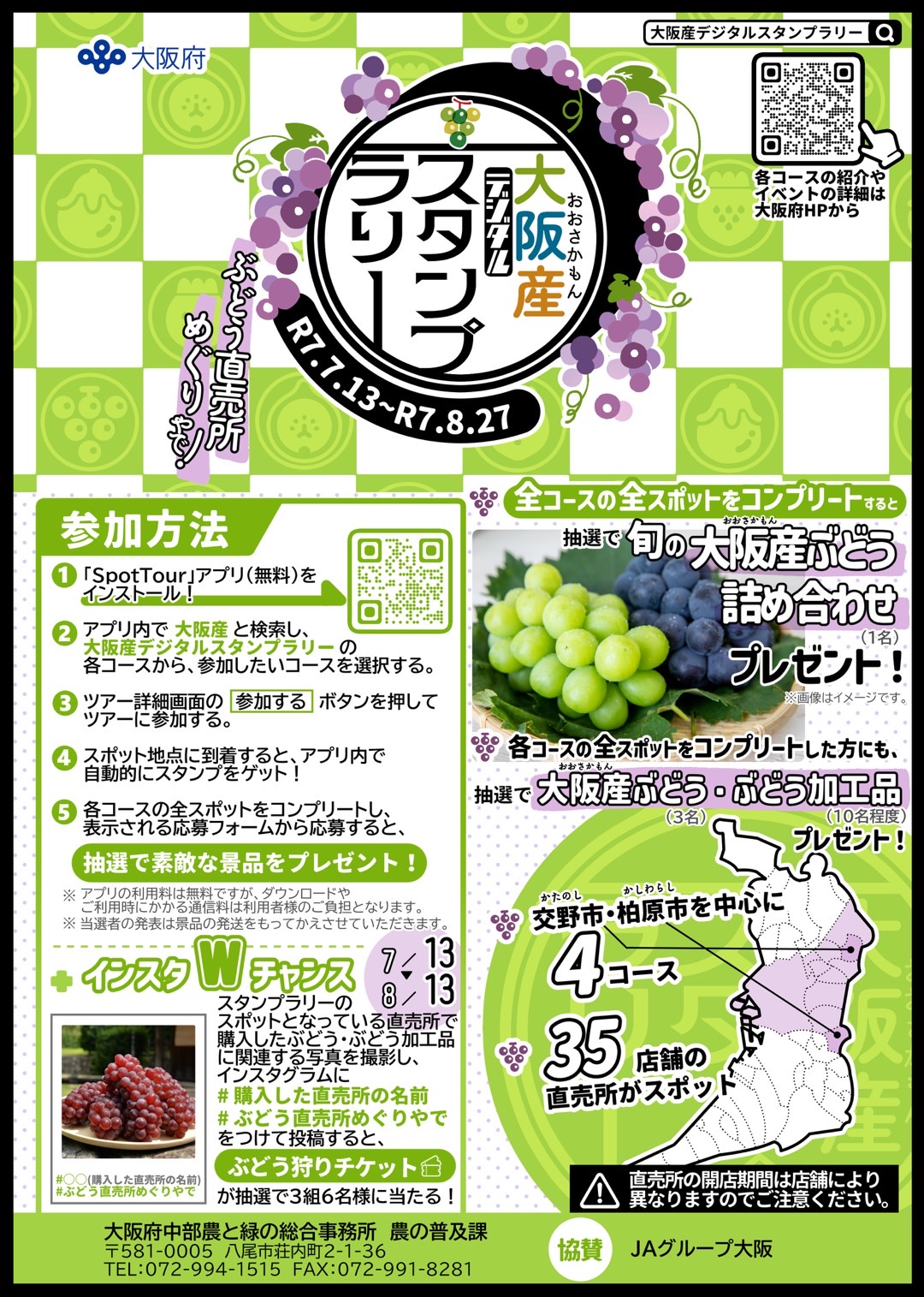 大阪産(もん)デジタルスタンプラリー ぶどう直売所めぐりやで! 大阪府のページはコチラ